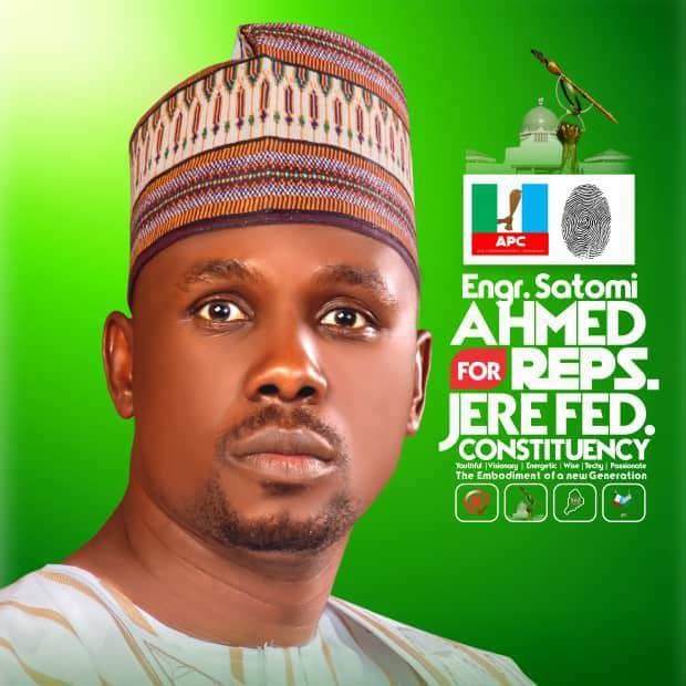 In 2019, Engr. Satomi won the election to represent Jere Federal Constituency in the 9th House of Representatives under the All Progressives Congress (APC) with an overwhelming margin. He also re-contested and won for the 2nd time at the just concluded 2023 General Election into the 10th House of Representatives members which made him the record breaker in the history of Jere Federal Constituency Elections.